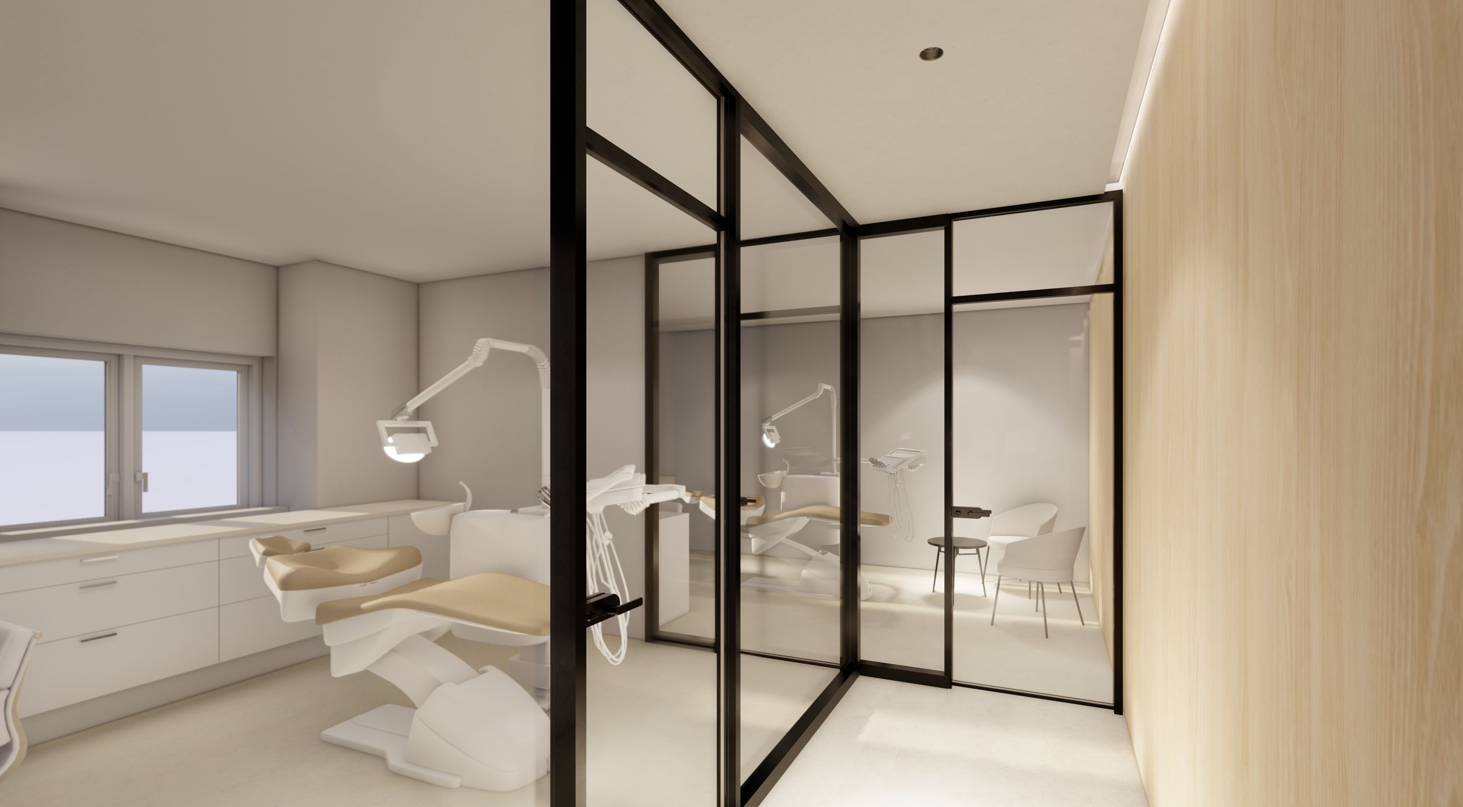 Interiéry, RekonstrukceZubní ordinace Praha DISPOZIČNÍ ÚPRAVY A PROJEKT INTERIÉRU Návrh nového dispozičního řešení suterénu BD s využitím jako zubní ordinace. Podoba dispozice byla řešena společně s interiérem ordinace dle požadavků klienta. Projekt vznikl ve spolupráci s ateliérem Landscape4U.